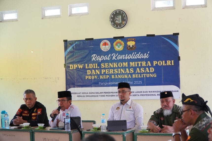 Pangkalpinang (04/05) – Tiga organisasi besar di Kepulauan Bangka Belitung, yakni Lembaga Dakwah Islam Indonesia (LDII), PERSINAS ASAD, dan Senkom Mitra Polri, menggelar rapat koordinasi (rakor) bersama di Pondok Pesantren Arroyan, Semabung Lama, Minggu (4/5/2025).