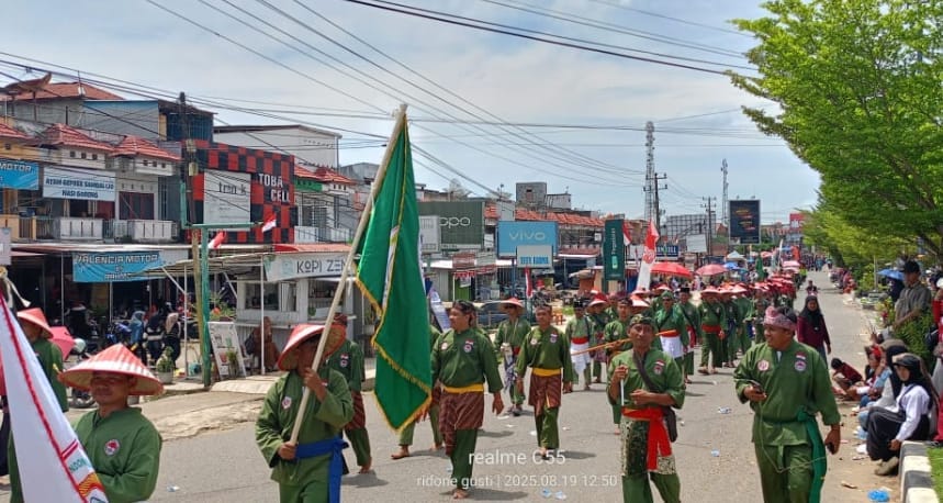 Tebo – Dalam rangka menyemarakkan Hari Ulang Tahun (HUT) ke-80 Republik Indonesia, Perguruan Pencak Silat Nasional ASAD (PERSINAS ASAD) Kabupaten Tebo turut memeriahkan karnaval kemerdekaan yang digelar di Kecamatan Rimbo Bujang, Senin (19/08/2025). Kontingen yang terdiri dari 156 warga ASAD ini tampil dengan semangat nasionalisme tinggi untuk memperkenalkan pencak silat sebagai warisan budaya bangsa Indonesia kepada masyarakat luas.