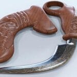 Betawi terkenal dengan senjata tradisionalnya yaitu Golok. Senjata tradisional ini sering dipakai untuk aksesoris keseharian busana adat Betawi yang dikenakan oleh kaum pria Betawi. Golok diselipkan dan diikat pinggang hijau serta dipakai ketika bekerja atau sedang bepergian sebagai alat untuk menjaga diri.
