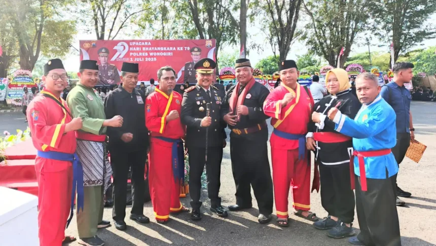 Wonogiri (1/7/2025) – Perayaan Hari Bhayangkara ke-79 di GOR Giri Mandala Wonogiri berlangsung beda dari biasanya. Bukan hanya upacara formal dan bubar, tapi lebih mirip ajang temu akbar para pendekar sekabupaten guyub, rukun, dan penuh semangat damai.